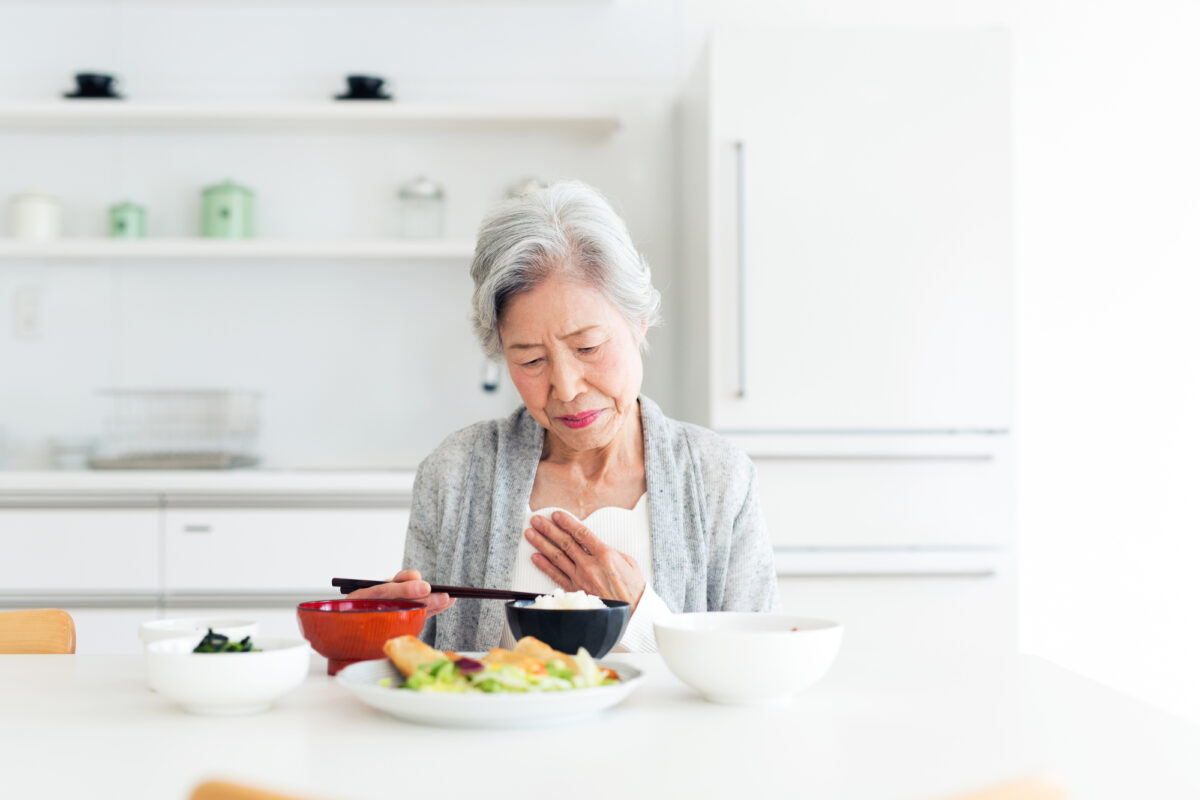 誤嚥とは、食べたものが食道から胃に入らずに謝って気管に混入してしまう状態です。軽い誤嚥であれば咳によって排出されますが、食べ物が気管から肺まで到達すると肺に細菌が感染して炎症を起こす誤嚥性肺炎を引き起こす恐れがあります。誤嚥性肺炎は主に高齢者や嚥下機能が低下している方に多く見られる傾向があり、中には命の危険を伴うこともあるために注意が必要です。