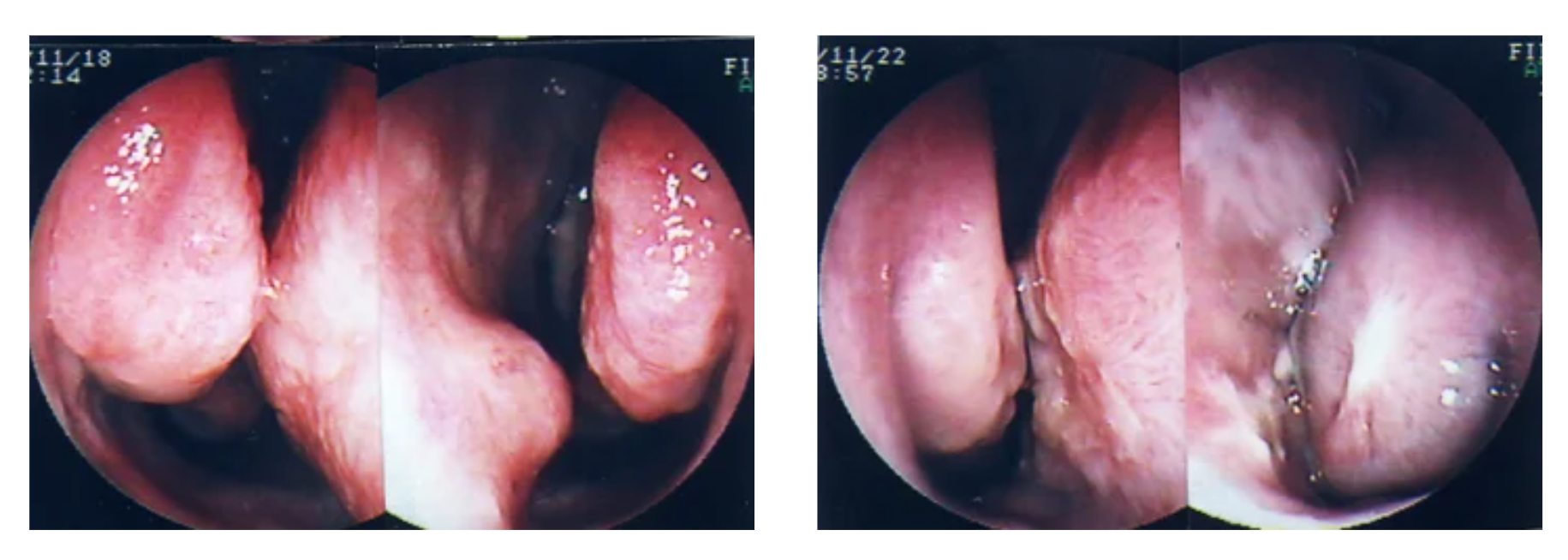 慢性副鼻腔炎で、鼻の粘膜が水ぶくれのように膨らんだ状態になったり、鼻ポリープができたりすることがあります。それを鼻茸と呼びます。