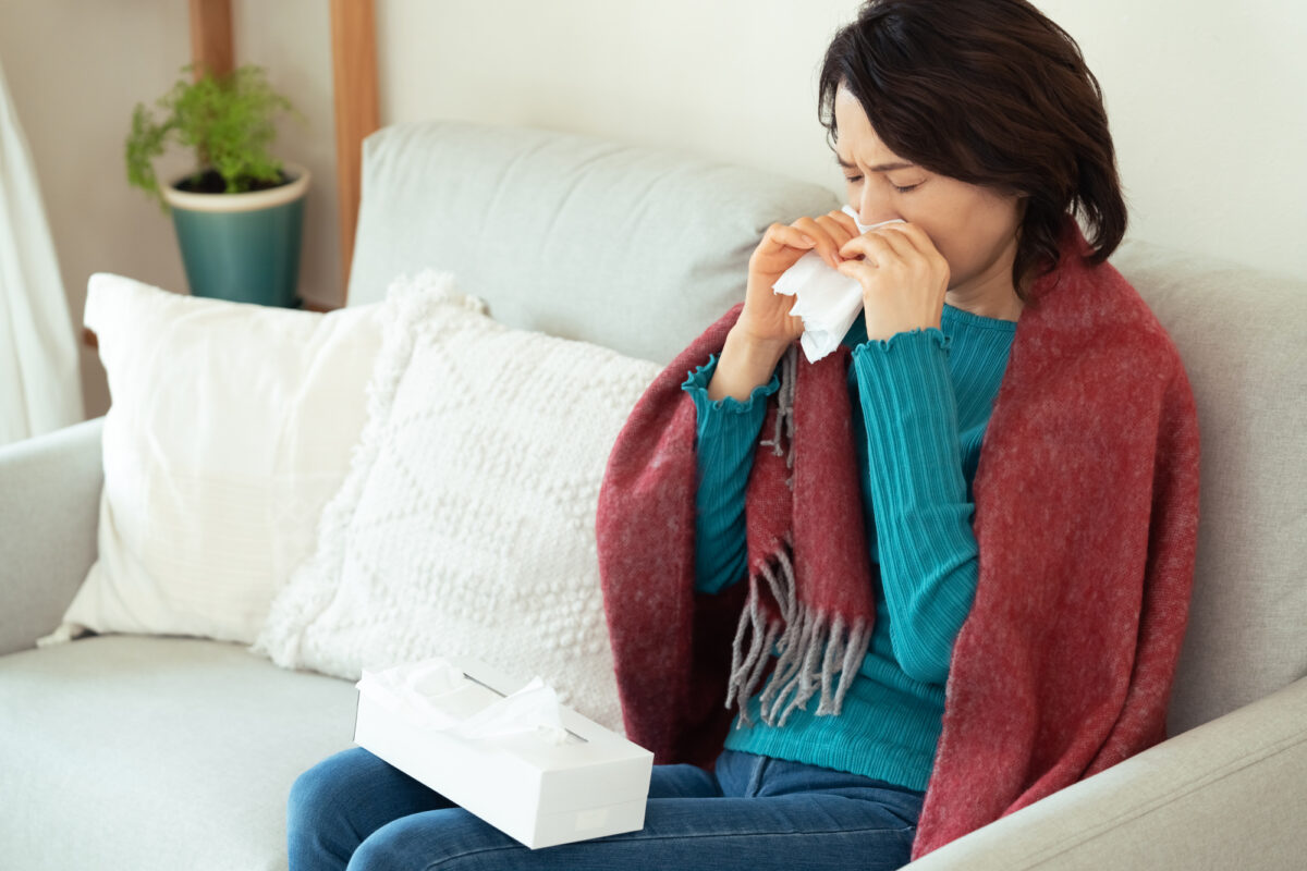 風邪を引いた際には、まずは身体を温めて安静状態を保つことが大切です。また、冬場などで冷たい空気が鼻粘膜に入ると刺激を受けてくしゃみを誘発しますので、室温は25度程度に調整するようにしましょう。その他、部屋が乾燥していると鼻やノドを刺激するため、加湿器などを使用して部屋の湿度を適切に保ちましょう。温度や湿度が高い状態だとウイルスの繁殖を抑制できるため、マスクを着用することも効果的です。